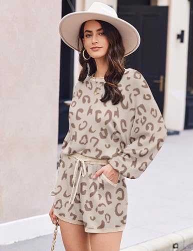 - 【Fashion & Comfy Design】This lounge sets include a long puff sleeve batwing sweatshirt top and a high waist matching shorts with tie waistband and side pockets, featuring a round neck crop top, ribbed cuffs and drop shoulder. Loose fit for staying cool and fresh