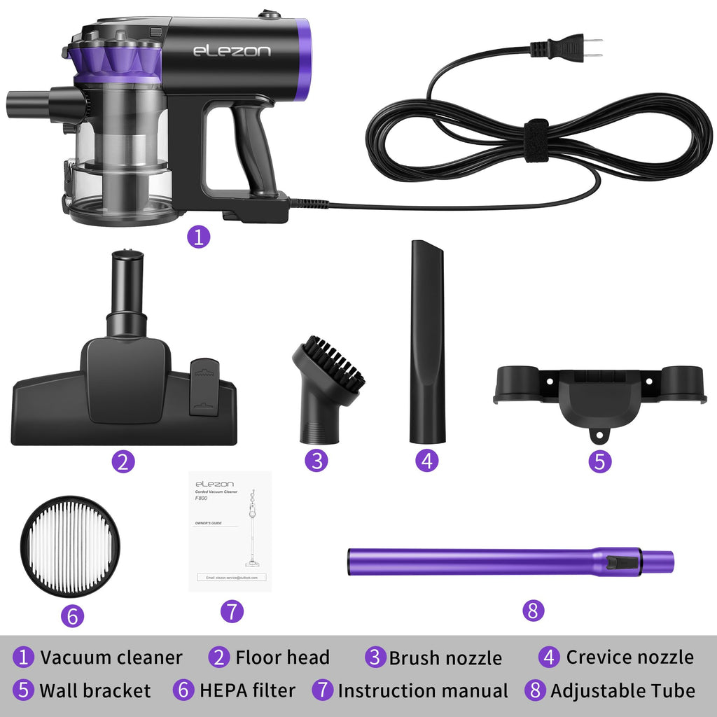 - Wall Mounted Storage: After each cleaning session, effortlessly mount the elezon F800 vacuum and cleaning tools on the wall for a space-saving storage solution. One year warranty is included with the vacuum cleaner. For more information about elezon F800 vacuum cleaner, please contact us.