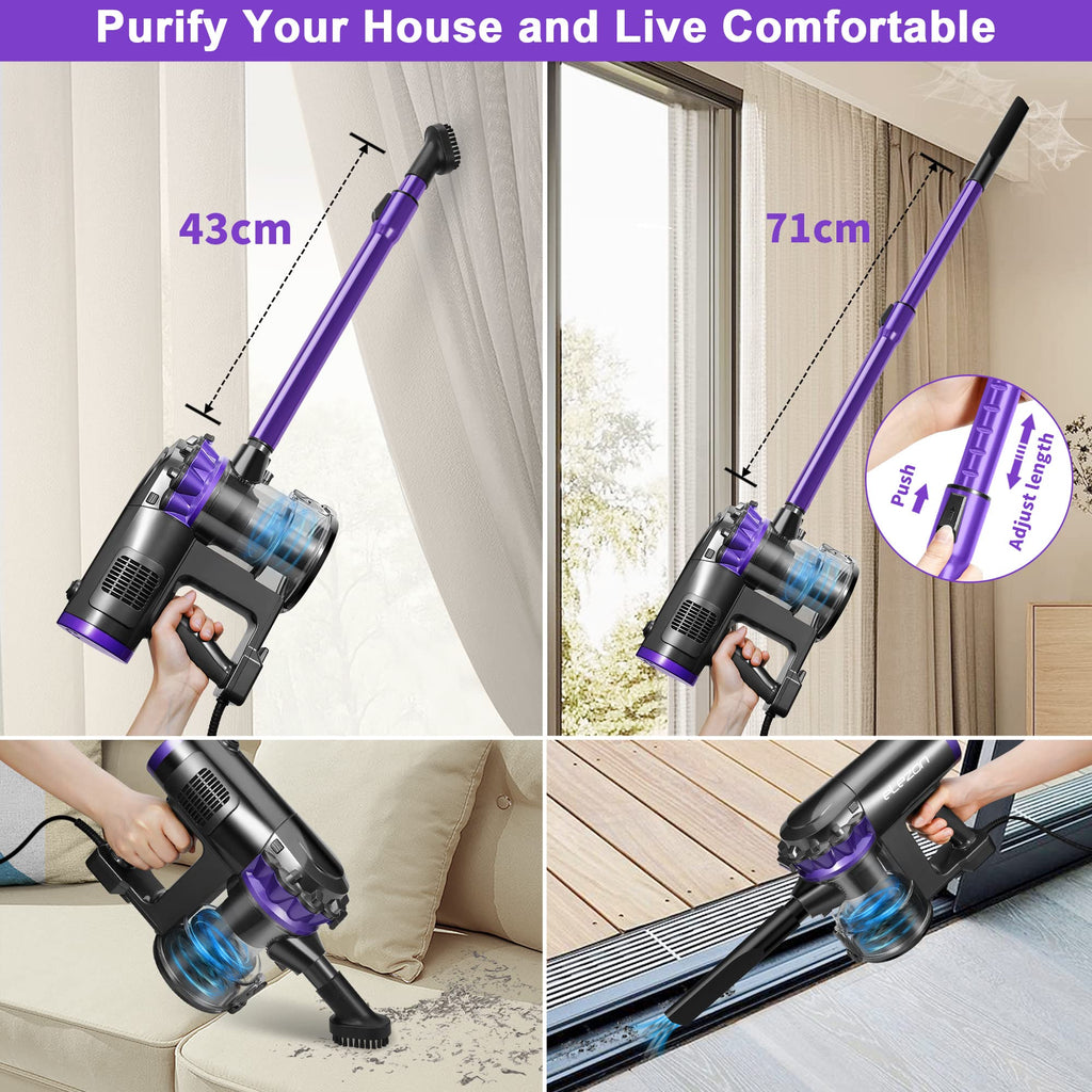 - Versatile Floor to Ceiling Cleaning: The telescopic tube extends from 17 inches to 28 inches for easy cleaning of high places like curtains and ceilings. With the telescopic tube removed, you can use the compact vacuum as a lightweight handheld vacuum. Great for cleaning sofas, furniture, tight spaces, stairs and more