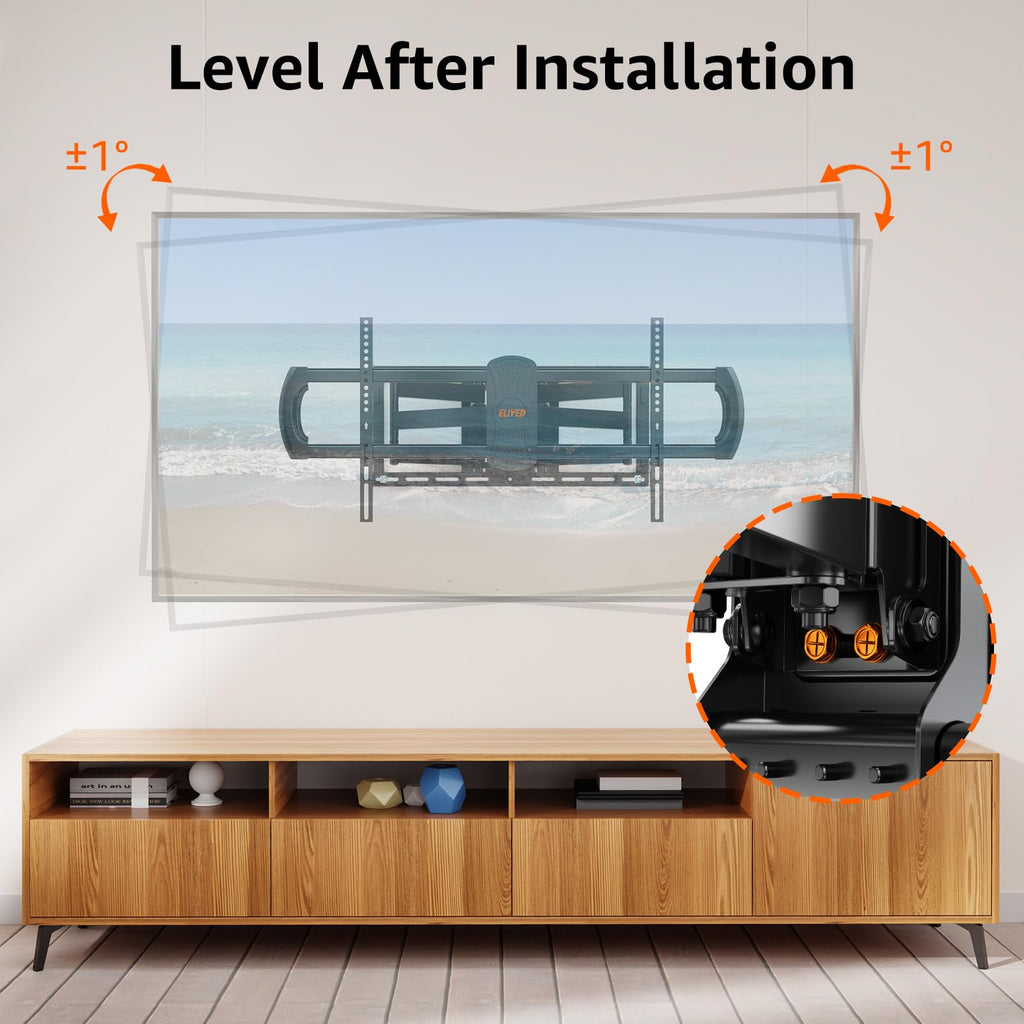 - Flexible Viewing Angle - TV wall bracket can tilt +5°/-10° to reduce screen glare, swivel left or right 45° to optimize your viewing experience, and has +1°/-1° screen level adjustment after installation