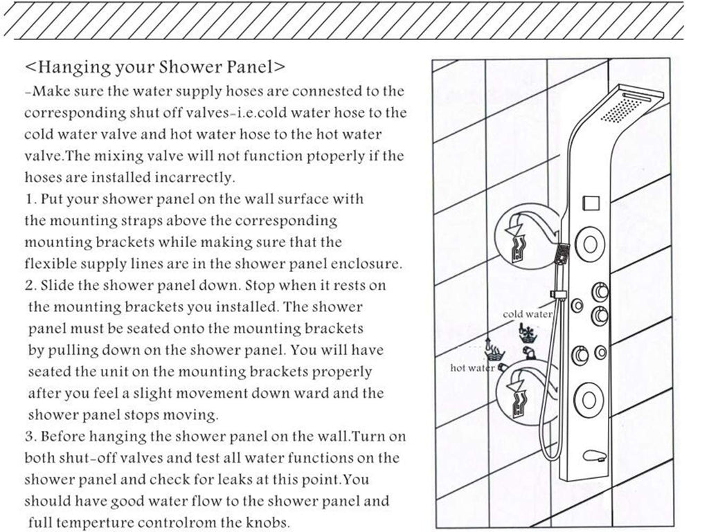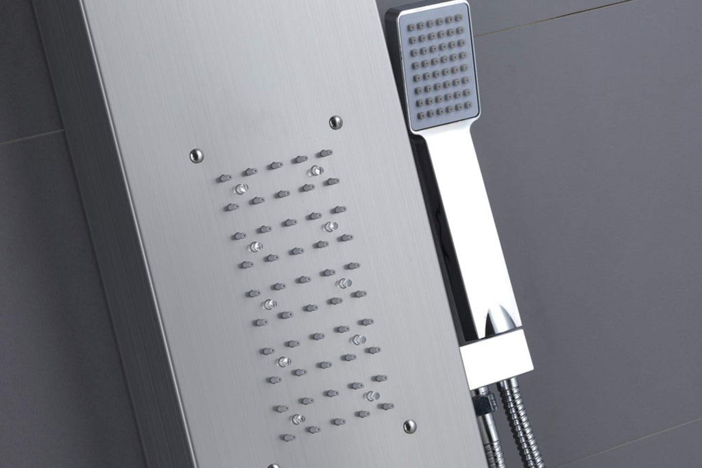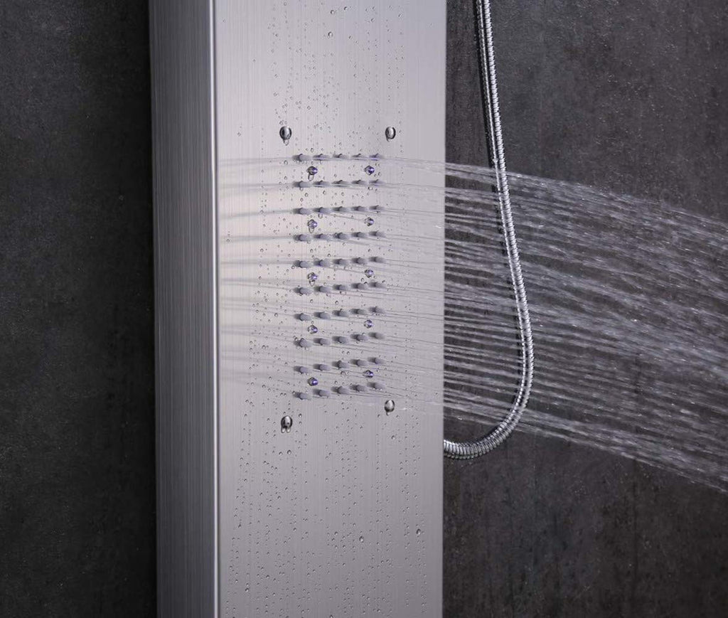 Details: Product Features: The ELLO&ALLO Shower Panel Tower is constructed with the highest quality SUS304 stainless steel and with an attractive brushed nickel finish to match, this shower panel is designed to provide only the most opulent of showers with its fully functions and variable controls. Immerse yourself in a truly relaxing shower experience and enjoy the modern style of this beautifully designed shower panel Specifications -Brand: ELLO&ALLO -Faucet Body Material: Brass -Panel Material: SUS304 Stainless Steel-Finish: Fingerprint-free Brushed Nickel shower system -Hand Shower: Engineering Grade Plastics ABS, PVD Plating -Shower Hose: 59" long stainless steel chrome hand shower hose -Installation Method: Wall Mounted -Functions: Five Modes (Rainfall, Waterfall, Horizontal Massage Spray, Hand Shower, Water Spout) -Product Dimension: 53"x18.3"x7.87" -Weight: 19.6IB Attention: 1.2 Year Manufacturer's Warranty. Or You can directly contact us, when it comes to any quality problem. 2.All dimensions are measured manually, there may be 0.39"-1.18" (1-3cm) deviations. We are Factory Proprietary Store,Providing Best Price and Customer Service.No Regret "Add to cart"