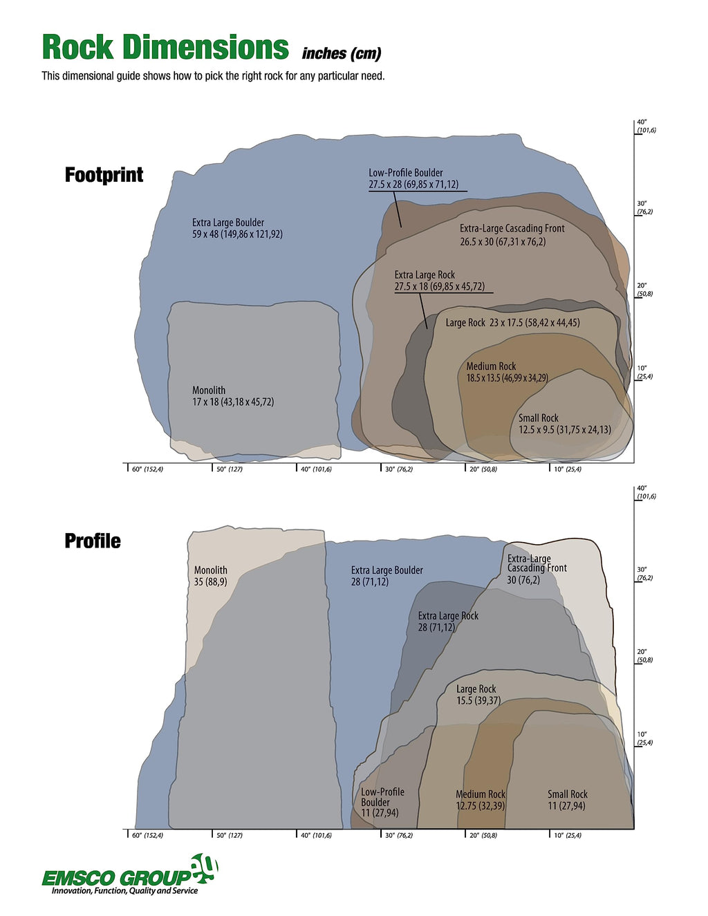 - Complete line of architectural rocks is available from EMSCO in many different sizes, along with an assortment of detailed textured rocks.