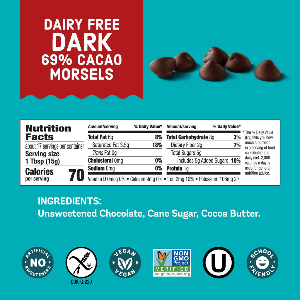 - Semi sweet baking chocolate morsels made in a dedicated nut-free and gluten-free facility from high-quality dairy free chocolate made with only three ingredients