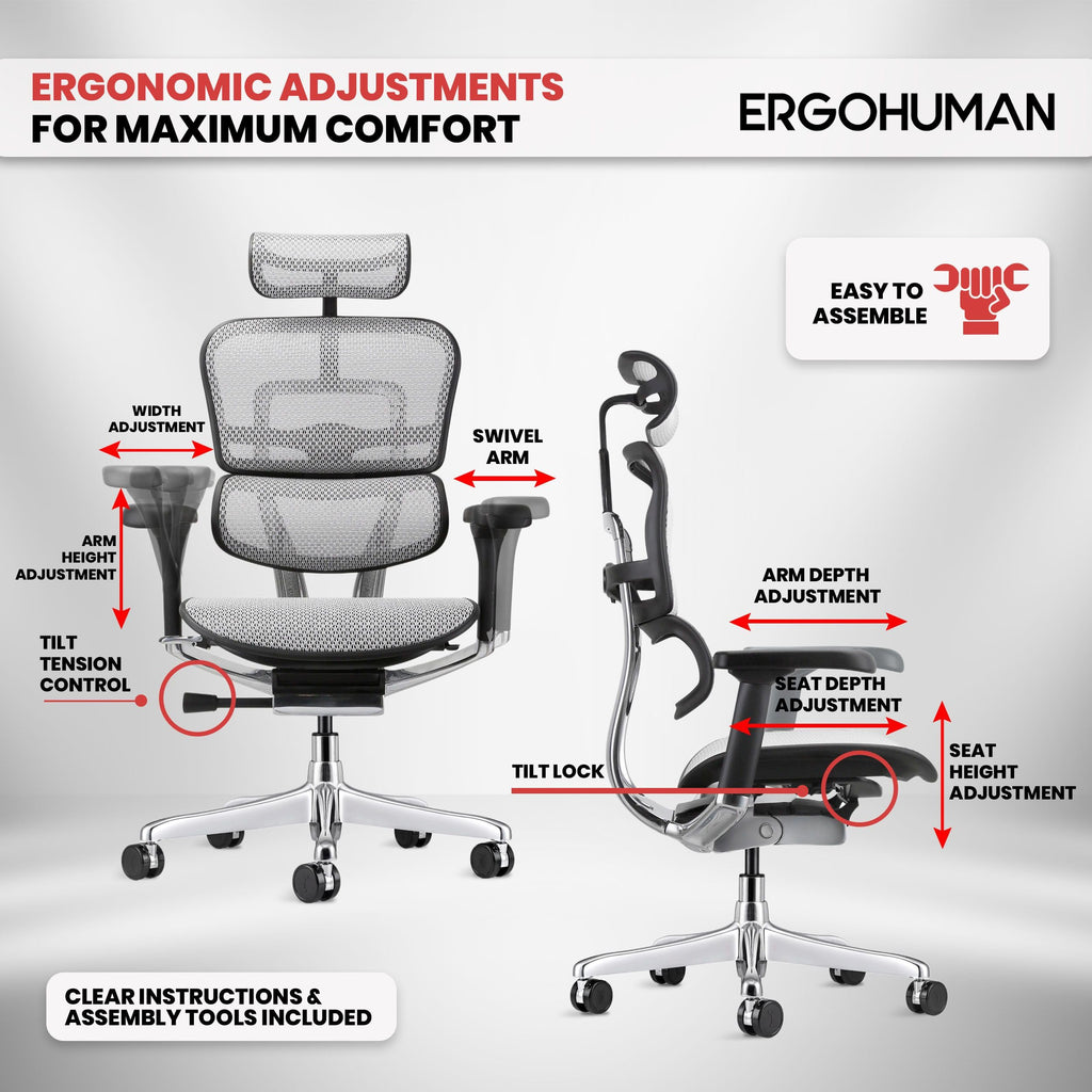 - Redefine your workspace with the Eurotech Ergohuman GEN2's modern and sophisticated design. Its sleek lines and premium finish add a touch of elegance to any office environment, seamlessly blending style with functionality.