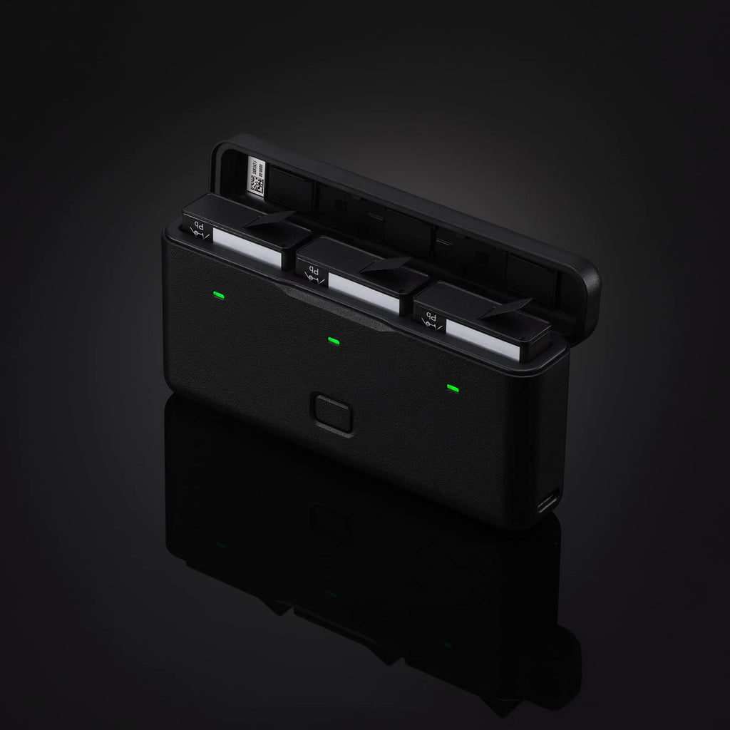 - 【Efficient Charging】The Osmo Action Multifunctional Battery Case can Intelligently fast charges three batteries.Stores three batteries and two microSD cards. Can be used together with Osmo Aciton 3 batteries as a power bank to charge other devices like a smartphone.