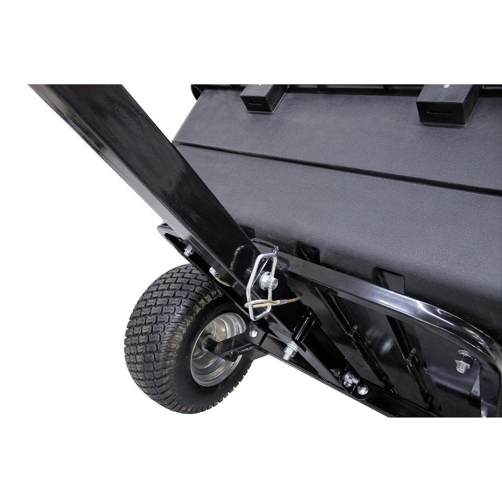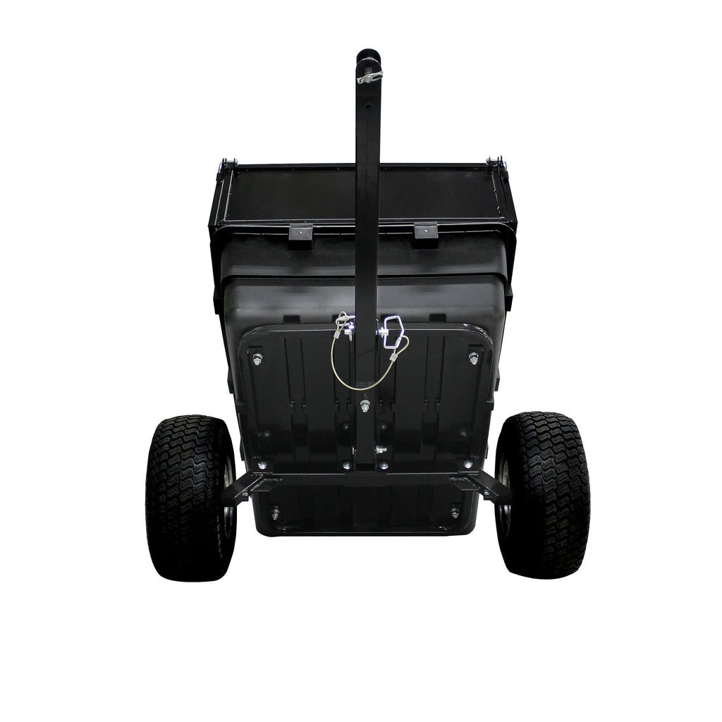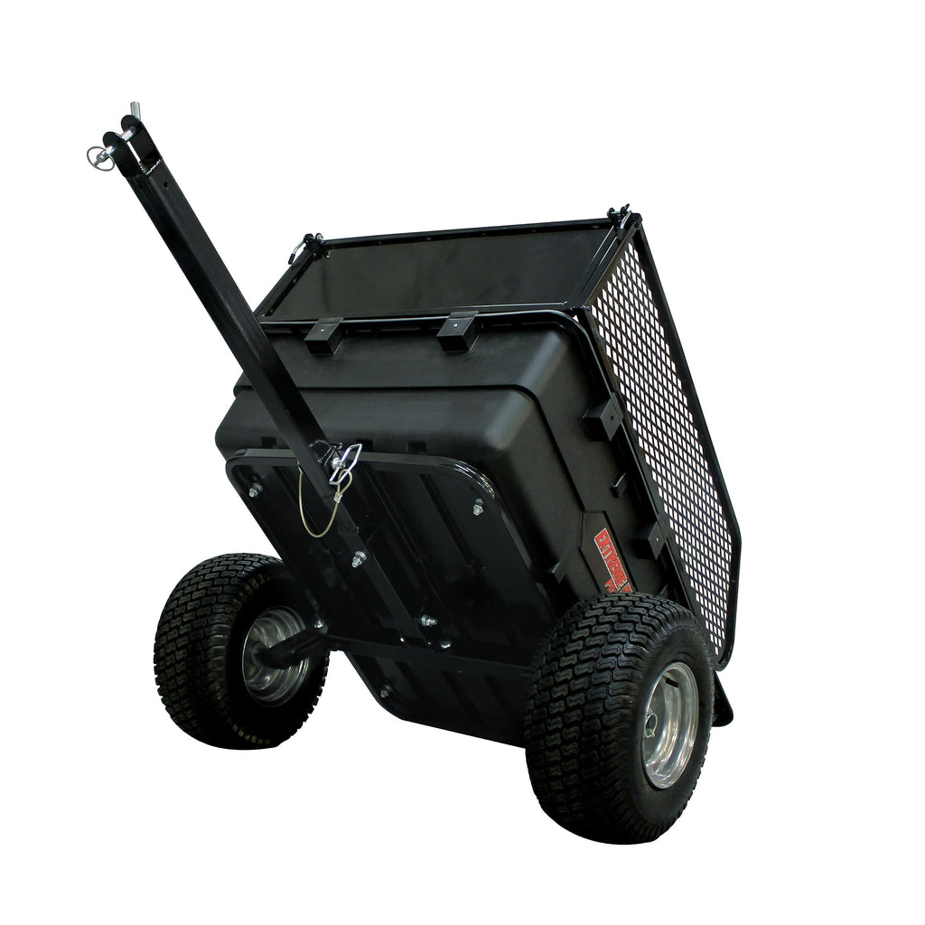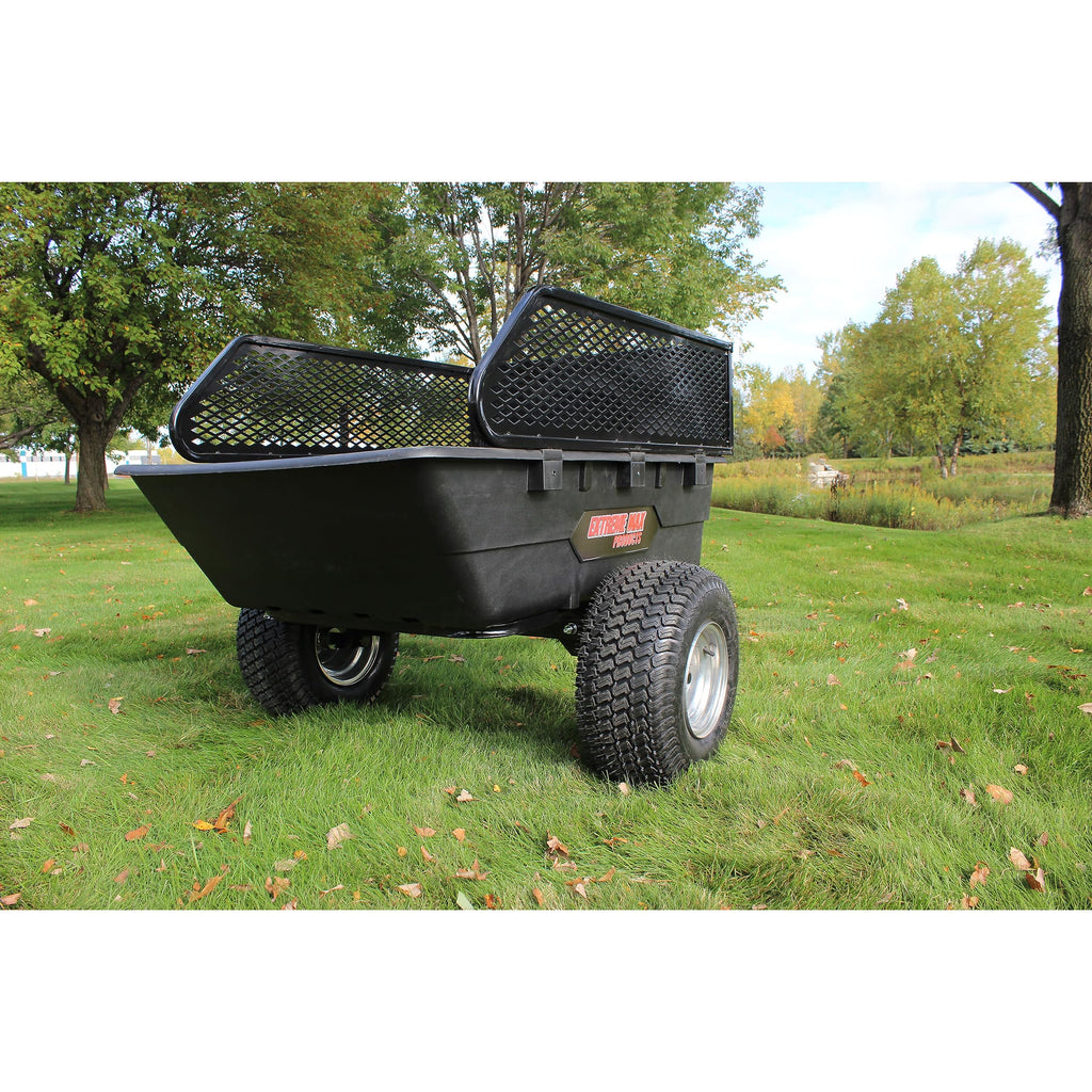 Details: The Extreme Max Pro-Series Off-Road Utility Trailer is as rugged and versatile as you'll find and pairs perfectly with your workhorse ATV, UTV or lawn and garden tractor, making those heavy loads more than manageable. From hauling firewood to moving gravel, from hunting excursions to ice fishing and more, the trailer boasts a staggering 1500 lbs. hauling capacity to make sure the job gets done. Stocked with 18" x 8" tires and over 11" of ground clearance, the trailer is truly built for off-road conditions. The trailer box measures at a fixed 30" wide x 48" deep with 12" side walls. Included with every trailer are side and front wall extensions to maximize the load, adding an additional 12" of height to the walls. When it's time to empty the box, release a pivot pin to tilt the trailer backwards into a dumping position that makes unloading a breeze.