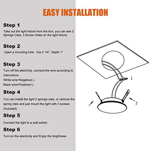 - 【Recessed Mount Easy Installation】Diameter(Inch): 4-1/2''; Cut (Inch): 3-1/4''; Depth (Inch): 1''. Please check the diameter and mounting hole before order. Recessed mount designed provide easy and safe installation, you can Install with two springs or screw holes (3 screws included). We have got the design patents and related quality certificates
