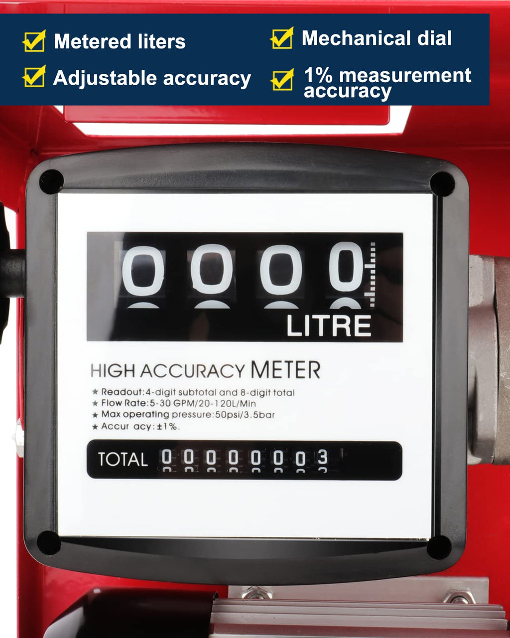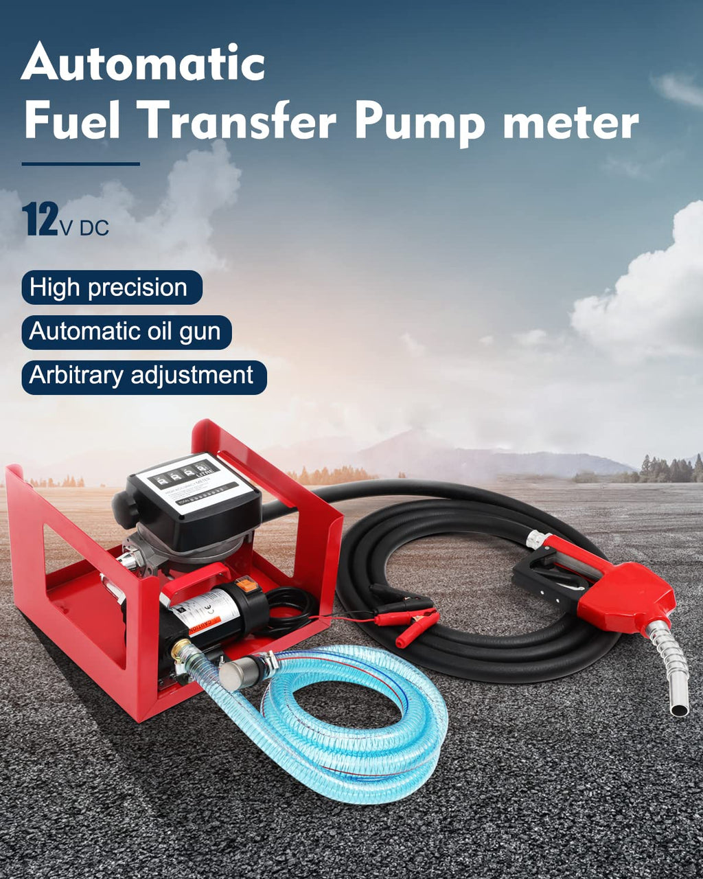 - Fully Equipped: Come with Suction & Fuel Dispensing Hose,Mechanical Fuel Flow Meter ,Brass Suction Strainer,and Automatic Fuel Dispenser Nozzle