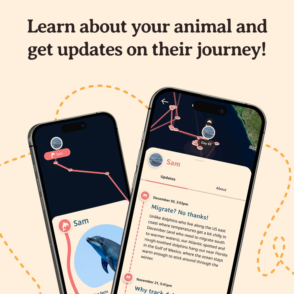 - INTERACTIVE: Exclusive Tracking Map - Follow your dolphin incredible journey on an interactive tracking map. You'll also see some cool stats about them like their speed, distance traveled, and more!