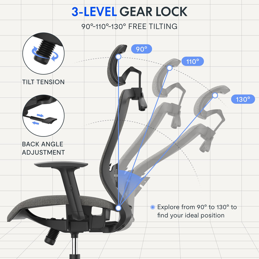 - 【Lock-in Tilt position】 The Four-level tilt tension lockable line control mechanism gives you more choice to tilt the chair when you want to rest yourself. The recline function makes you tilt the backrest back (90~130°) or sit straight freely. The office chair is larger than other chairs and can accommodate different body builds. Weight capacity is 300 lbs.