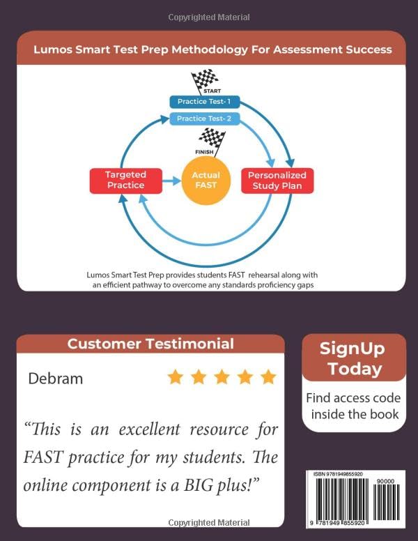 Two full-length practice tests mirroring the 2025 FAST exam Personalized study plans for targeted remedial practice Engaging test prep resources such as guided practice questions, solved examples, videos, mind maps, flashcubes, and more A user-friendly dashboard with detailed performance reports Lumos AI Tutor for personalized support during practice