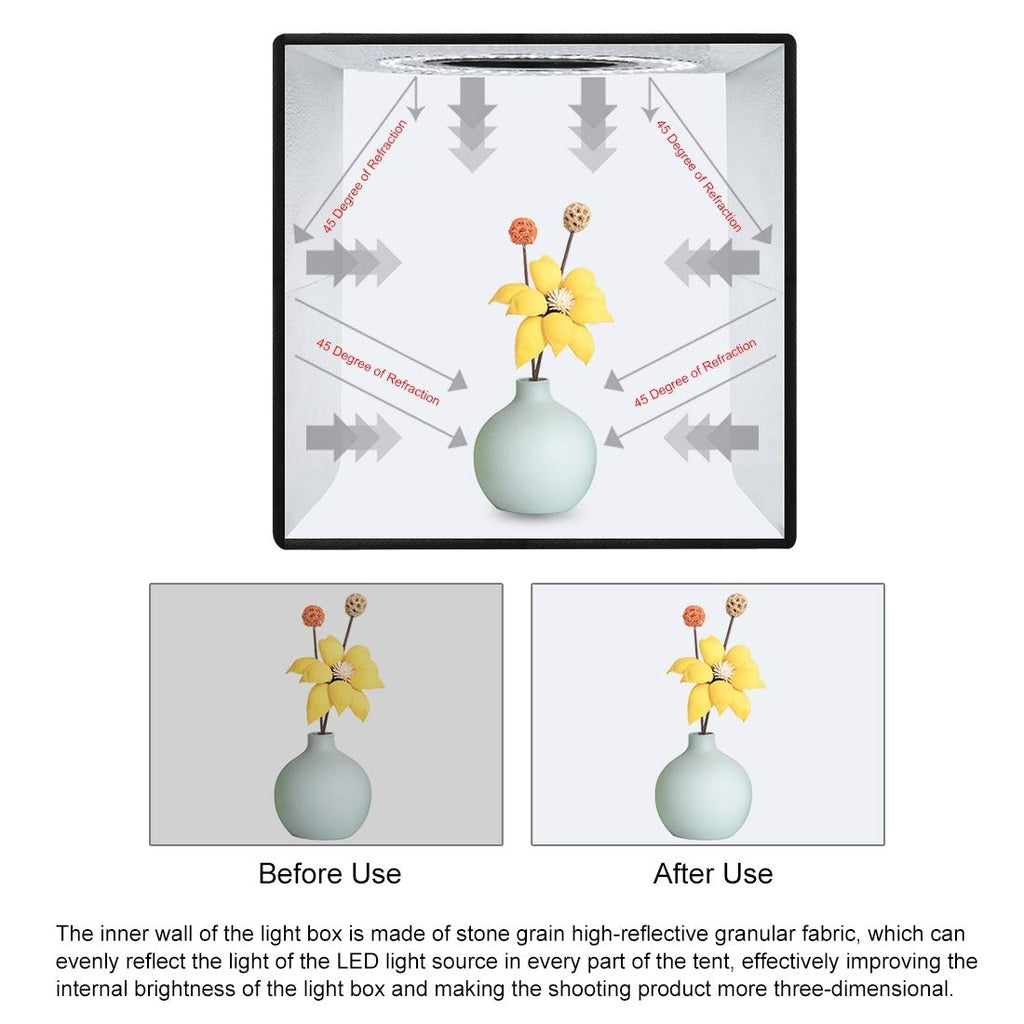- GOOD LIGHT GATHERING EFFECT -- The photo light box use of stone-patterned high-reflective fabrics, using 45 degrees of refraction to enhance the internal brightness of the light box