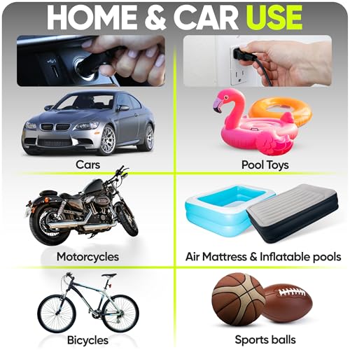 - On the Road - Perfect for car, truck, suv, motorcycle tires. Compatible with all vehicles with DC-12V cigarette lighter power outlet. Can also be used as an air pump for bike tires.