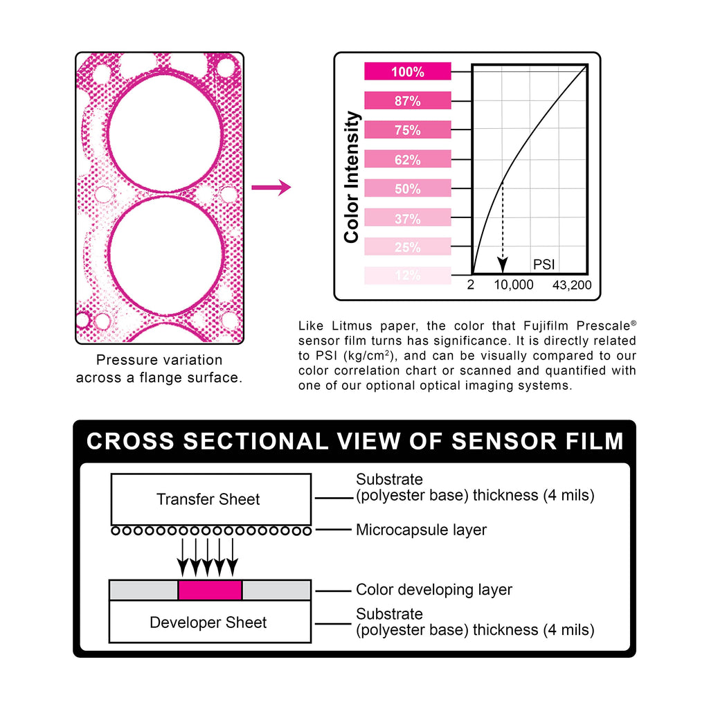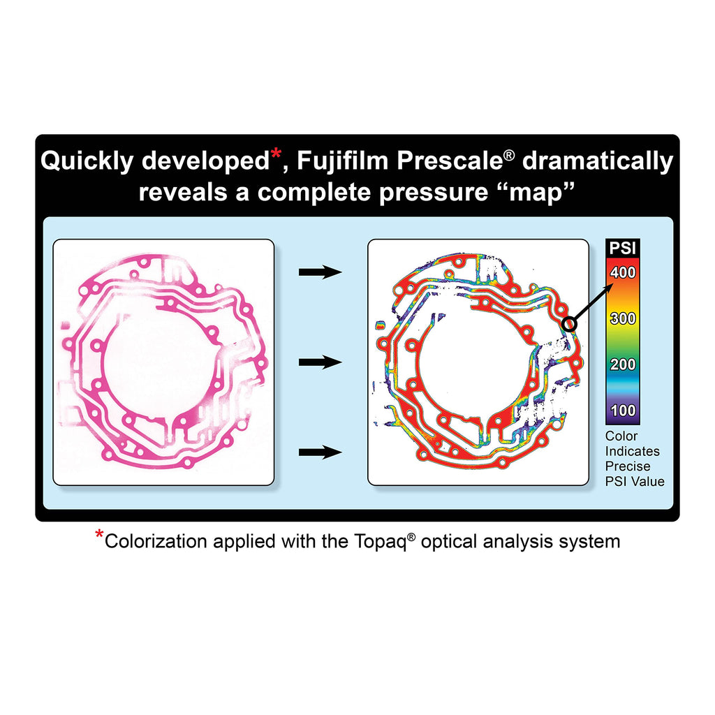 Details: Prescale is a unique pressure indicating sensor film that illuminates what is occurring between any two mating, contacting, or impacting surfaces.