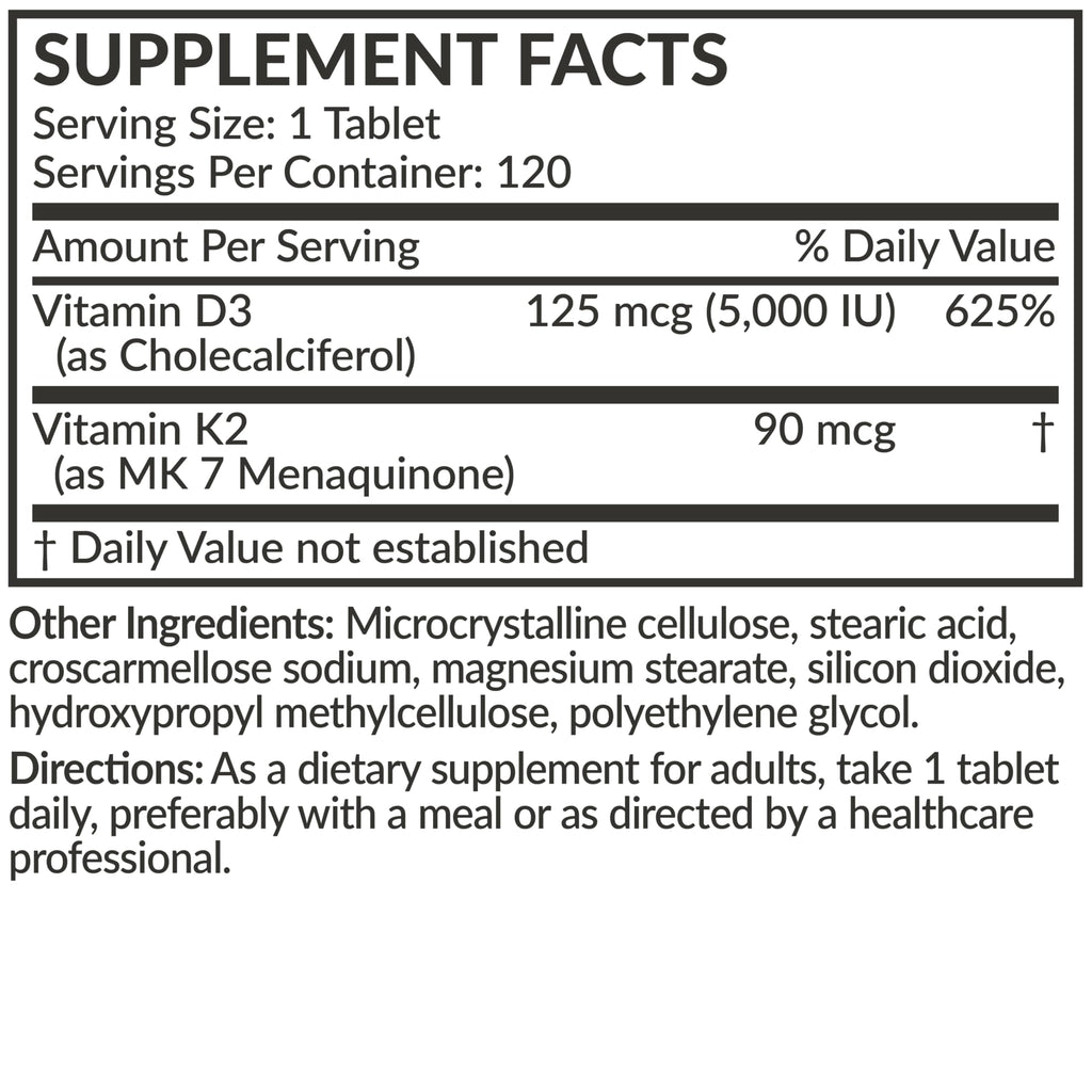 - High Quality & Great Value: Futurebiotics K2 + D3 provides 90 MCG of Vitamin K2 as MK-7 and 5000 IU of Vitamin D3 per tablet. We strive to support your good health and well-being through high quality supplements at the best value.