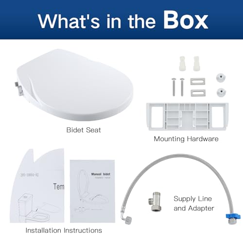 - Durable Construction: The body of the bidet toilet seat is made of PP material, while the accessories include a brass T-valve and a stainless steel water hose. This bidet toilet is constructed for durability and long-term use