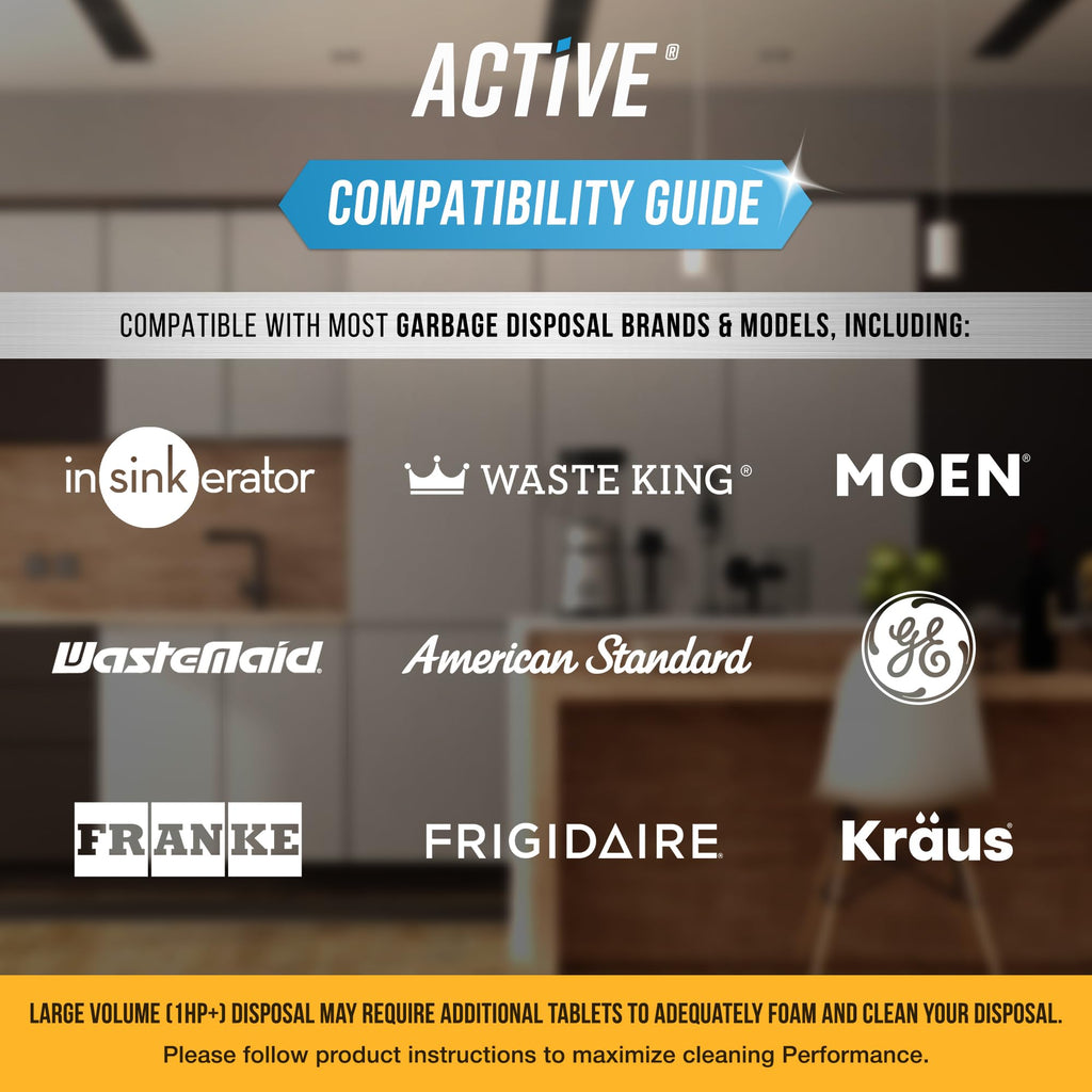 Details: Meet the Newest Member of the ACTIVE Family. Value Pack includes 24 Pcs Orange Citrus Disposal Tablets. Besides Sink disposal cleaner and deodorizer we also have cleaners for dishwasher, dish washing machine, laundry detergents and more!