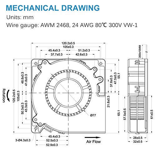 - Dimensions: 120x120x32mm / 4.72x4.72x1.26in, Speed: 3300 RPM, Air Flow: 36.2CFM, Power: 12W, Noise: 51.8dBA
