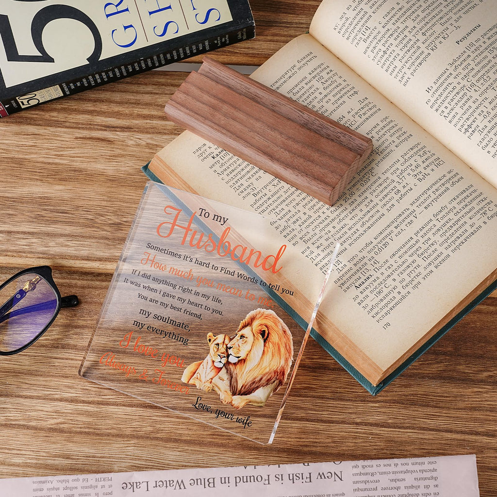 - UNIQUE DESIGN: Our husband present acrylic plaque designed with lion couple pattern, it would be a perfect design as a gift for husband from wife. This carefully crafted design represents the powerful connection between both of you, a love that is truly extraordinary. It serves as a constant reminder of the passion and devotion that have grown stronger over time.