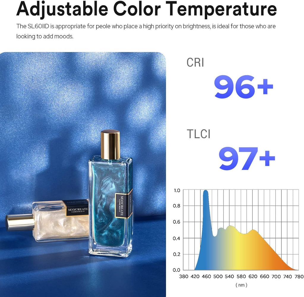 - [PROFESSIONAL BOWENS MOUNT LIGHT] CCT 5600K, power 70W, CRI 96+, TLCL 97+, SL60IID daylight led video light restores the truest color for you, and thus illuminates your scene in a natural way. Built-in Bowens mount for compatibility with a wide variety of light modifiers, feel free to create diverse light effects.