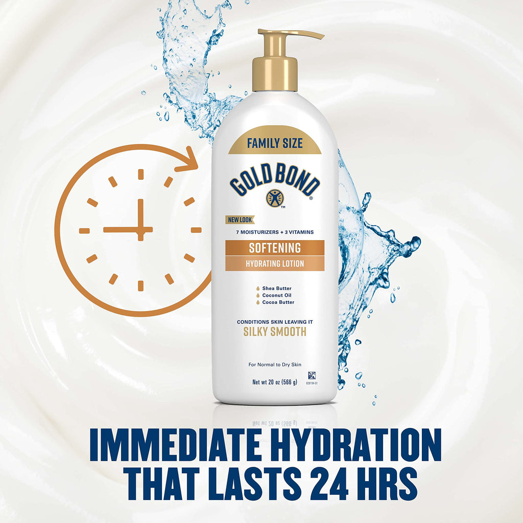 - Gold Bond Softening Lotion contains 7 moisturizers and 3 vitamins to hydrate and nourish skin