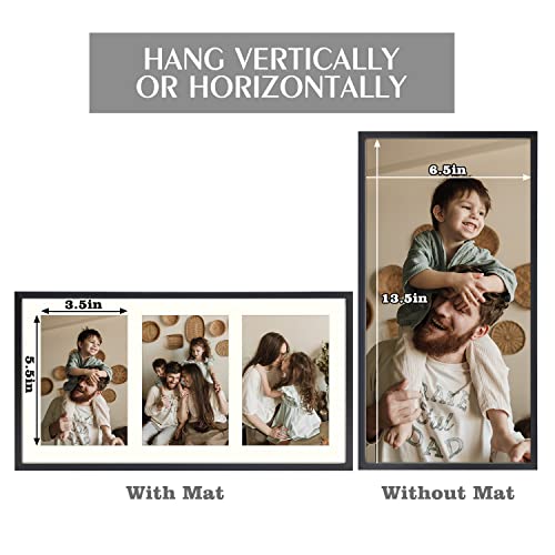 - Size: Our 7x14 Picture Frame Fits 3 4x6 Photos with Acid Free Mat or 14x7 Inch Without Mat. Note: Mat Openings 3.5x5.5 Inch, Mat Opening Was Designed Slightly Smaller Than Photo Itself In Order To Hold It Steadily While Not a Defect