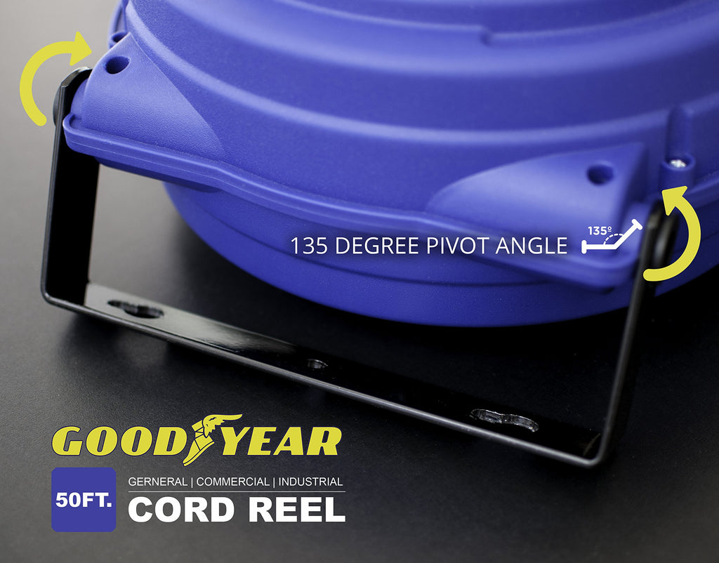 Our SJTOW Cord Reels are cETLus, Intertek GS Listed approved & certified, including cull quality tested. Goodyear Extension Cord Reels includes a circuit breaker, to reset & protect from overcurrents. Our Reels are best suited for indoor & outdoor use, night or day environments, for DIY or industrial applications, allowing for extension to be up out of the way keeping the workplace safe.