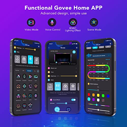 - Smart Voice Control: Manage Govee LED lights for TV with simple voice commands, via Alexa and Google Assistant, or with the Govee Home app. Enjoy access to more colors and features like Timer, Video, DIY and Music mode, helping you create the ambiance you need.