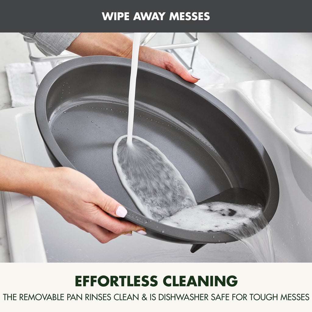 - EASY CLEANUP: The removable pan rinses clean, plus it’s dishwasher safe for tough messes.