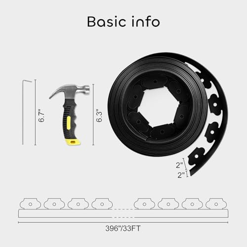 - 【No-Dig Design】Lawn edging can quick and simple installation, no digging required. Garden staples are designed to easily pound into the ground to secure the edging in place.