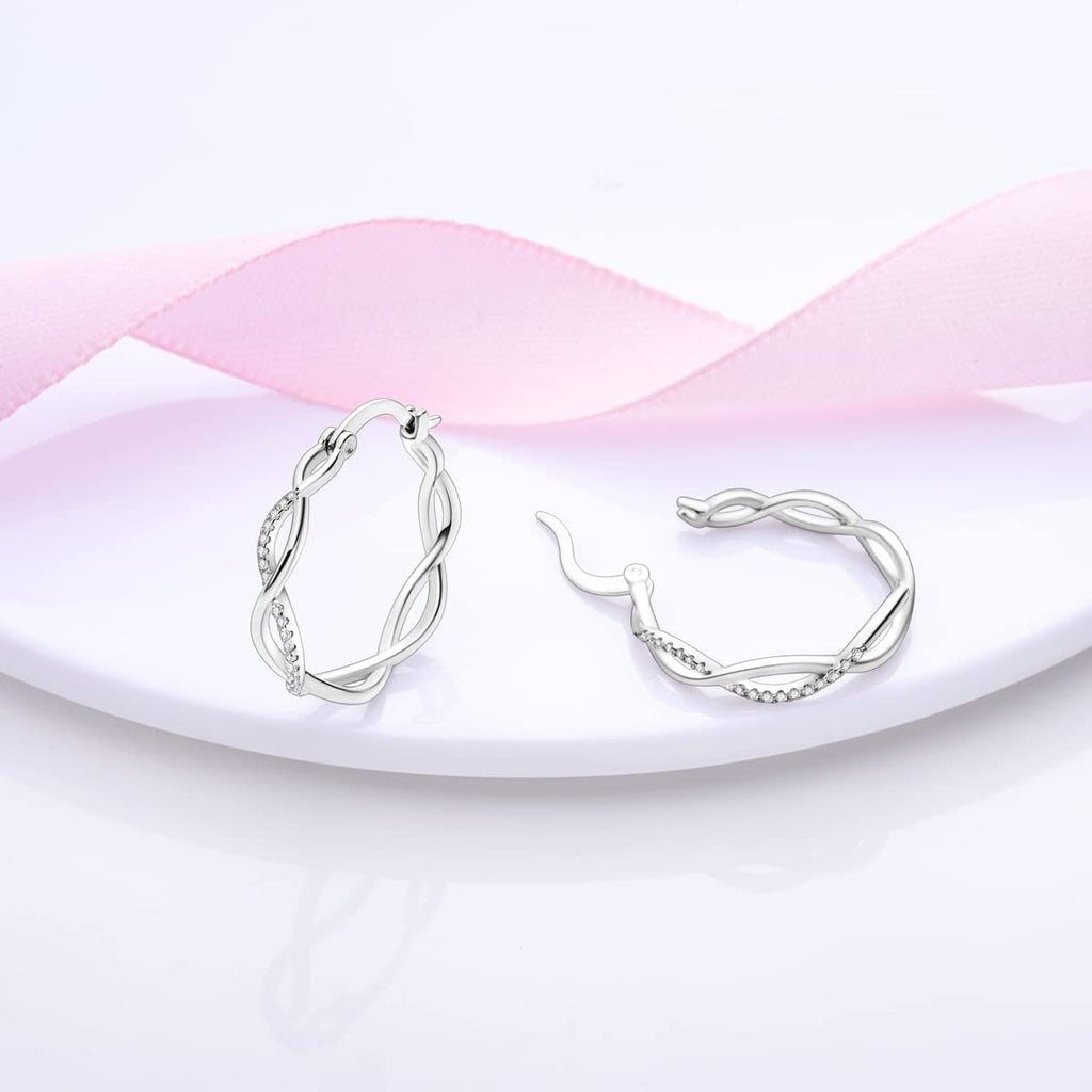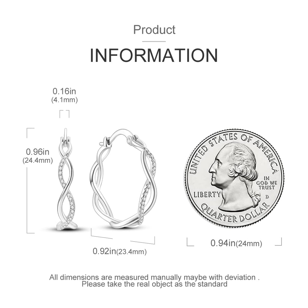 - Crafted from premium 925 Sterling Silver, our earrings guarantee durability and a timeless aesthetic. They feature sparkling White Cubic Zirconia stones that add a touch of glamour to the twisted hoop design.