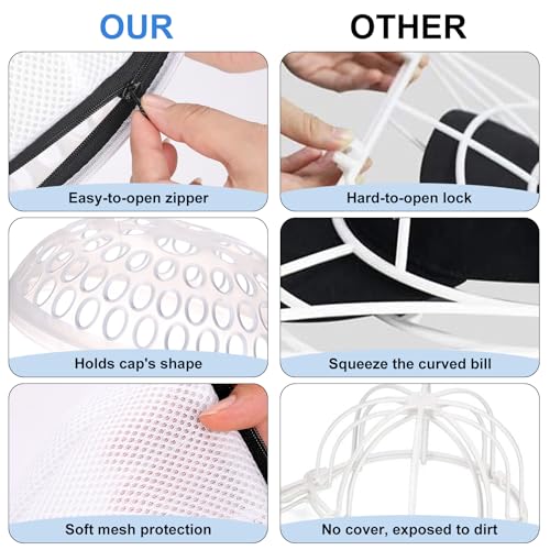 - Upgraded Hat Washer: The upgraded hat washer for baseball caps has a mesh bag sewn into the hat rack, unlike most hat cleaners that only have a hat rack or a mesh bag with a separated cap rack