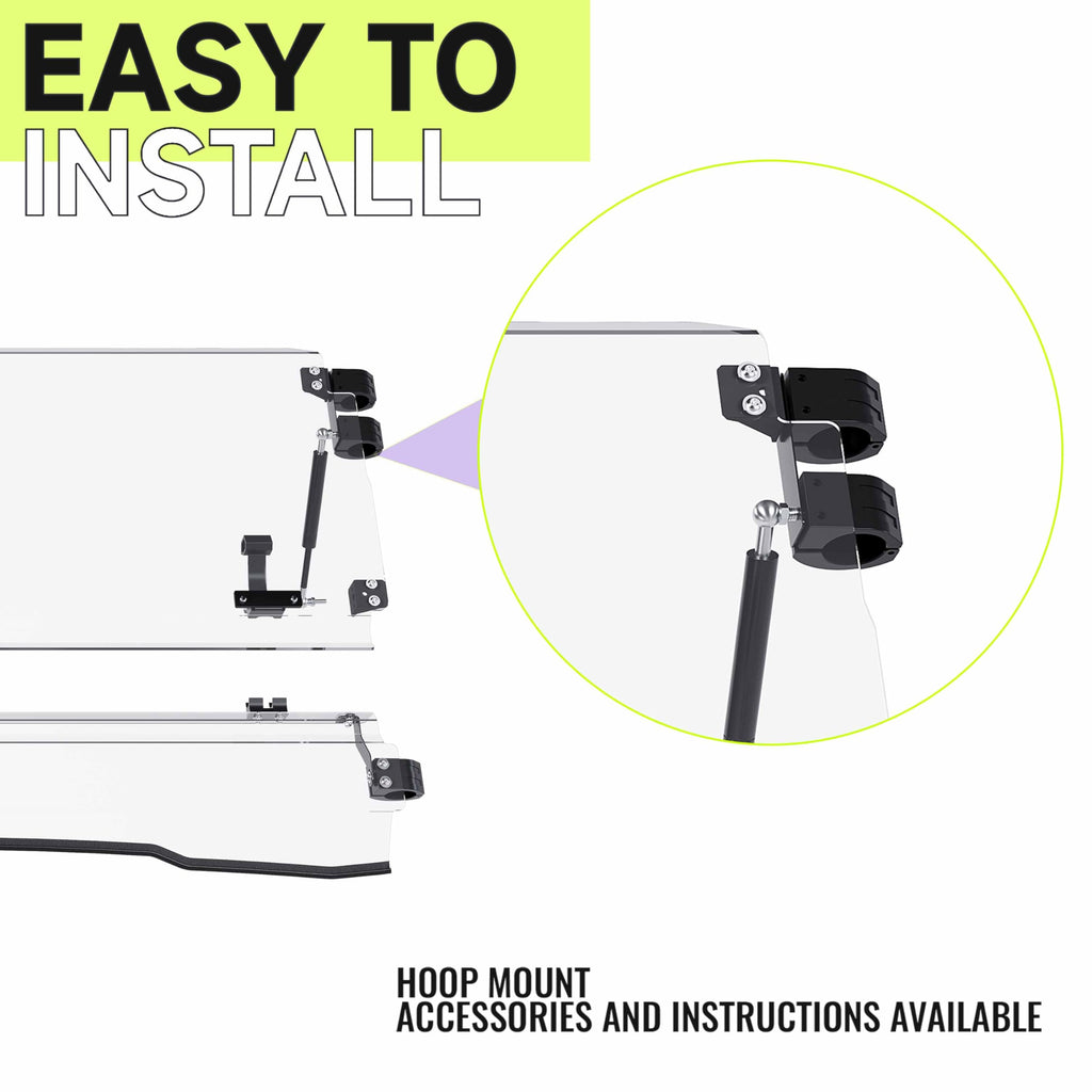 - SCRATCH RESISTANCE AND STRENGTH- Top-Quality, we precision cut this windshield for a seamless fit. Which is impact resistance, ensuring a long-lasting outdoor usage. Contoured to hood with full length rubber seal for a great fit, which not only makes the windshield fit better, but also ensures that it will not be damaged during bumpy driving. You won’ t have to deal with it shifting or jostling on bumpy rides.