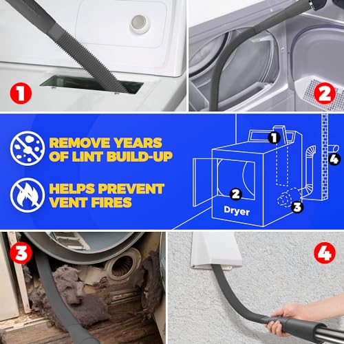 - Remove Lint Build-up: Holikme dryer vent cleaner kit can easily help you to remove years of built up lint from your dryer vent