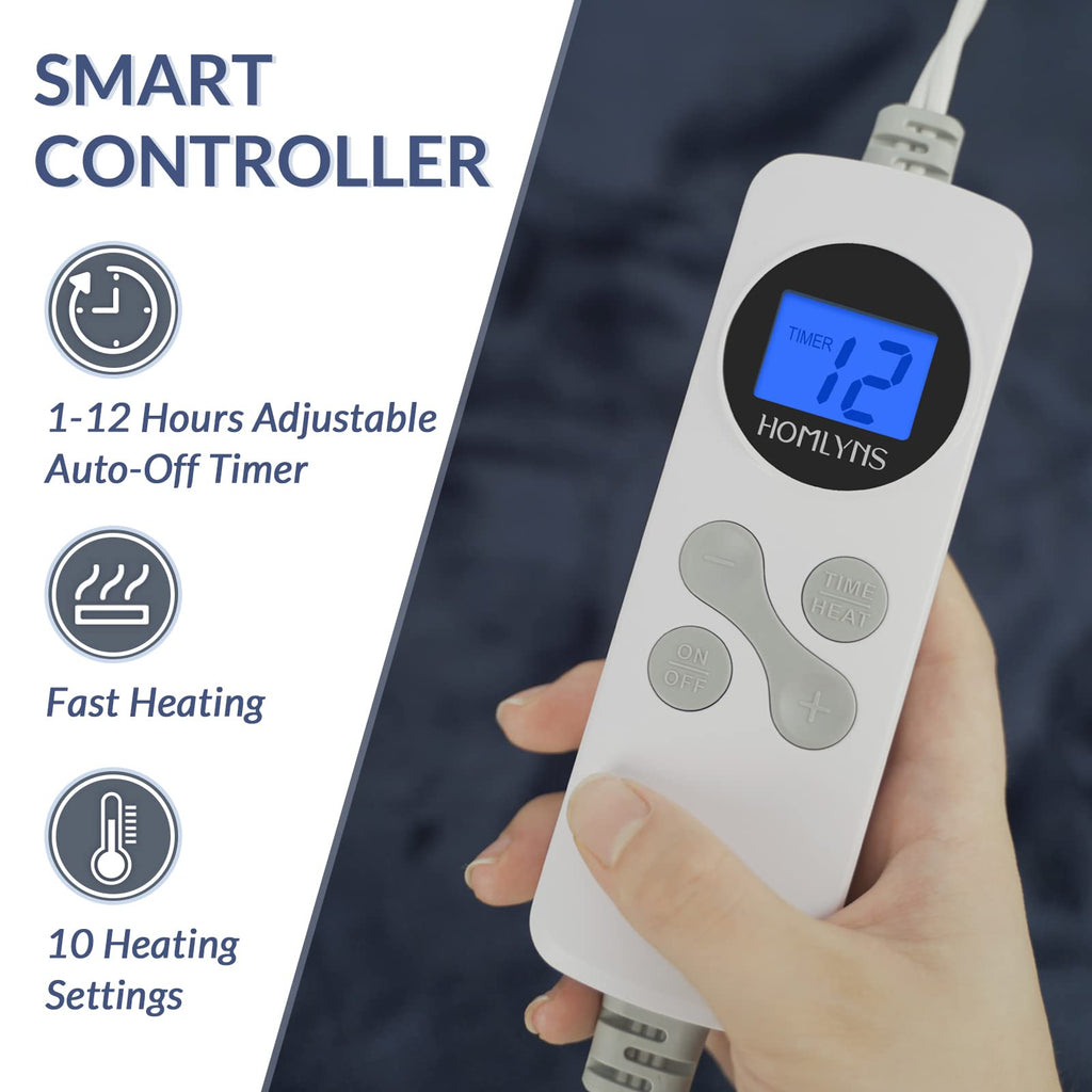 - FAST HEATING & STABLE TEMP - The twin size electric blanket has a digital controller that supports 10 adjustable heat settings to satisfied precise temperature you need. HOMLYNS electric blanket also features preheat and evenly heat distribution, you can feel warm in few minutes.
