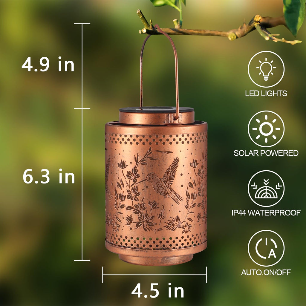 - Graceful Decorative Design:The retro appearance, with gold copper color and hollow out metal veneer, the solar outdoor lanterns casts bright and warm light in darkness, accompanied by gorgeous and graceful butterfly patterns, adding a beautiful atmosphere to the surrounding environment.