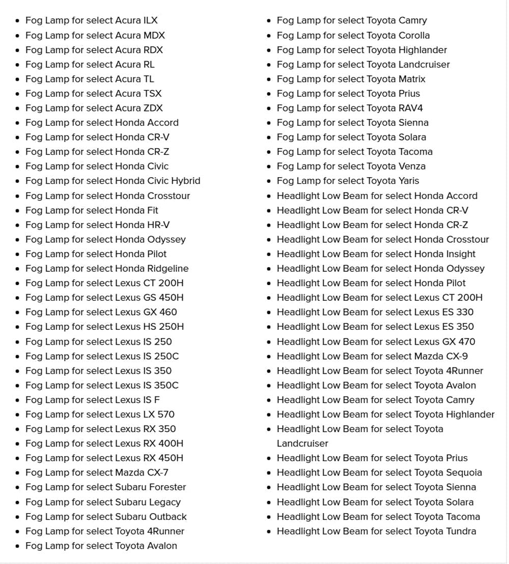 - Known to be compatible with some Honda/Acura, Toyoto/Lexus, Mazda and Subaru, includes one pair of 4" long wiring adapters, featuring H11/H8/H9 880/881/890 female connectors on one end and 2 wire leads on the other end, ensuring seamless integration and easy plug-and-play installation