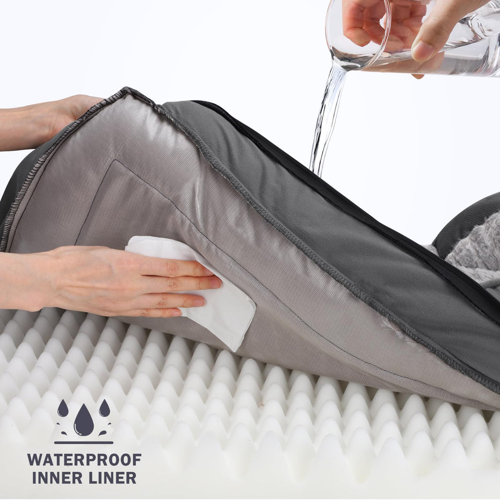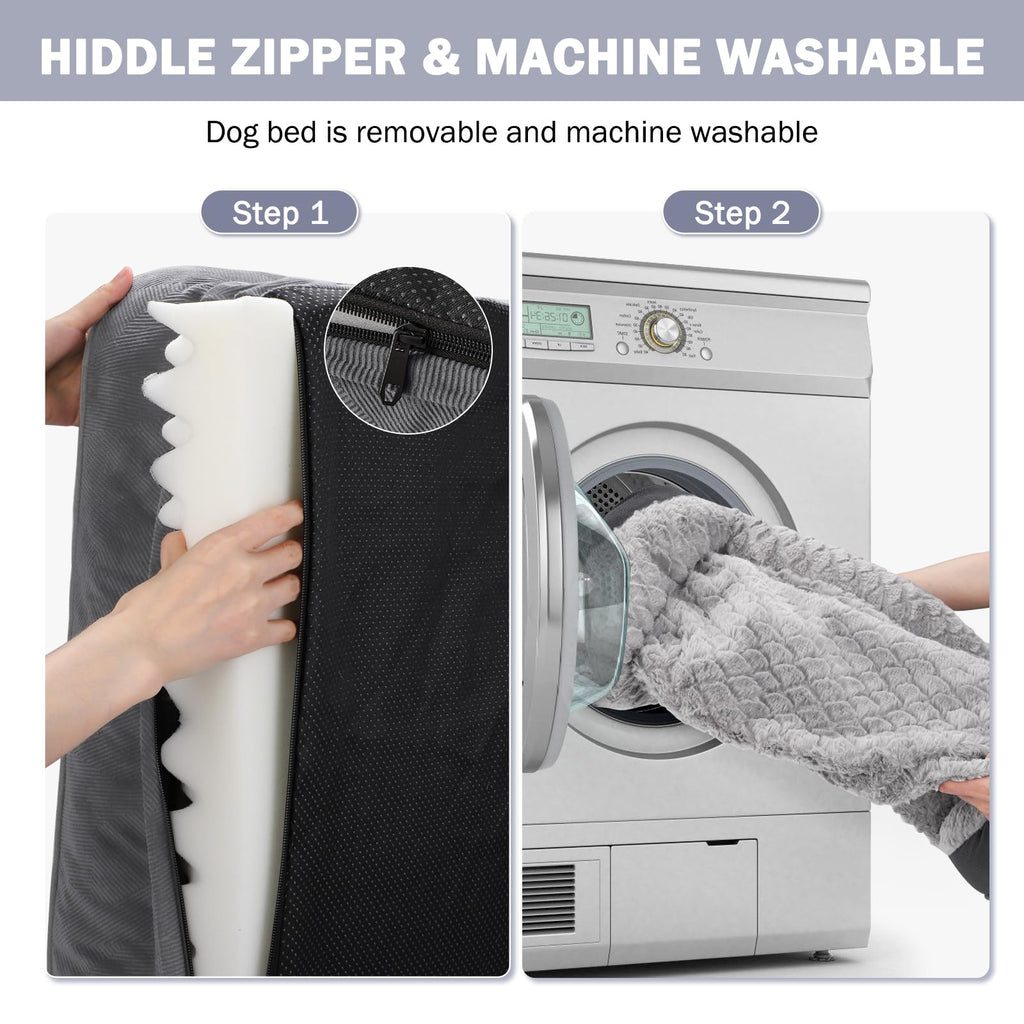 - 🐶WATERPROOF & WASHABLE DOG BED: The dog bed features a removable, machine-washable cover with a zipper for easy to quick remove and care, so just throw it in the washing machine and will be as good as new, ensuring your pet's space stays fresh and hygienic. The waterproof inner lining fully protect the foam from spills, water damage, or accidents, prolonging the product's life.