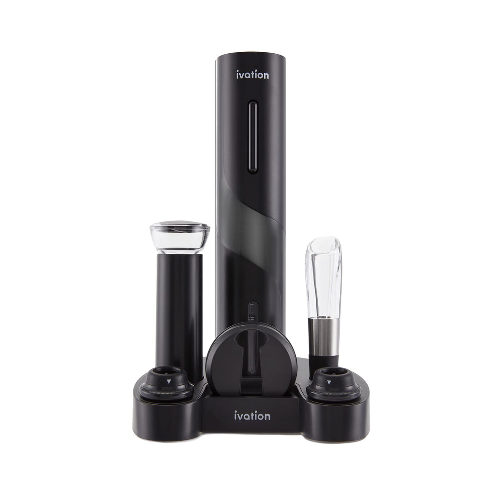 - 7-PIECE WINE ACCESSORY COLLECTION | All-in-One Wine Opening, Serving & Preserving System Includes Everything You Need to Enhance, Enjoy & Extend the Life of Your Favorite Red or White Variety | Includes Battery-Powered Automatic Wine Opener [Requires 4xAA Batteries], Aerating Pourer, Wine Pump, 2 Stoppers, Foil Cutter & Storage Stand