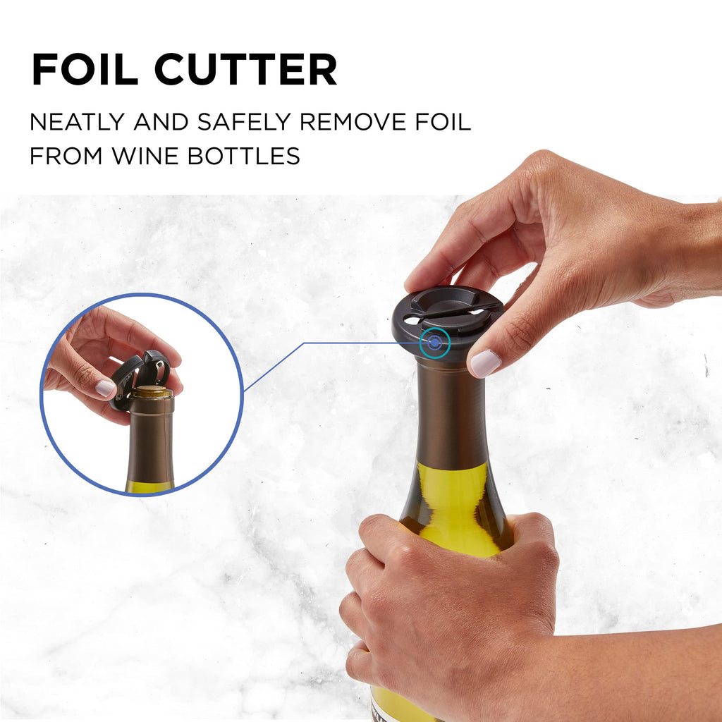- ALL-IN-ONE WINE ACCESSORY COLLECTION | Wine Opening, Aerating & Preserving System Includes Everything You Need to Enhance, Enjoy & Extend the Life of Your Favorite Red, White or Rosé Variety | Includes Battery-Powered Automatic Wine Opener, Battery-Powered Aerating Dispenser, Manual Wine Pump, 2 Stoppers, Foil Cutter & Luxury Gift Box