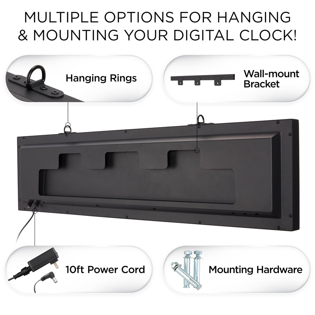 - SLEEK, JUMBO 3-FOOT TALL DIGITAL CLOCK | Supersized Timekeeper Displays Time, AM/PM, and Temperature for Ultimate Convenience | Jumbo Sized Digits Measure 6.5” High for Maximum Visibility & Clarity | Powered by 10-Ft AC Adapter [Included]