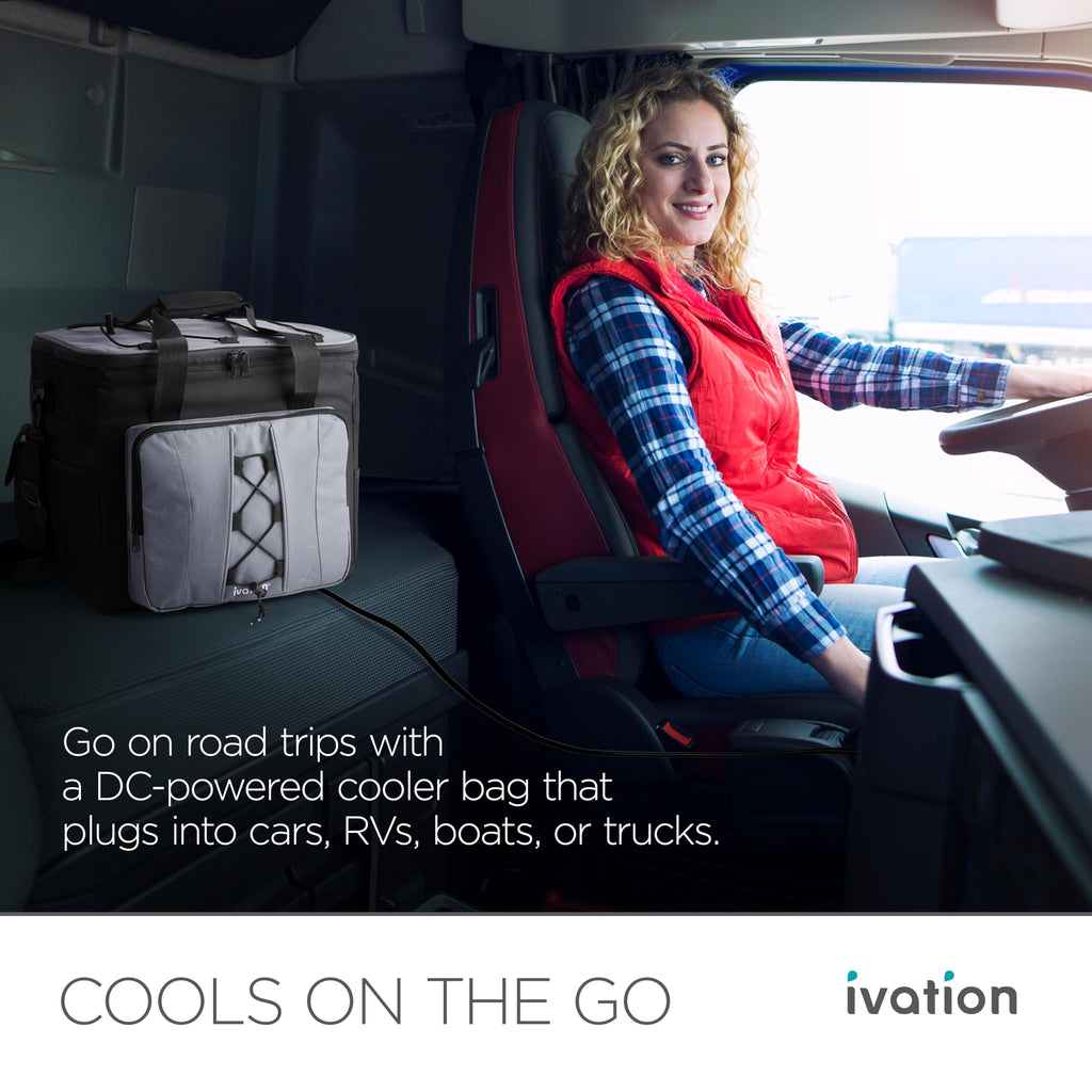 - THE COOLER THAT CHILLS ON THE GO | Hit the Road & Beat the Heat with the Ivation Portable Electric Cooler Bag! Spacious 18 Liter (4.7 Gallon) Capacity Holds Cans, Bottles, Food & Other Perishables for Icy Enjoyment Anywhere | Includes Cooler Pack/Lunchbox & DC Adapter for Plugging Into Vehicle with 12V Outlet Including Cars, Trucks, RVs & Boats