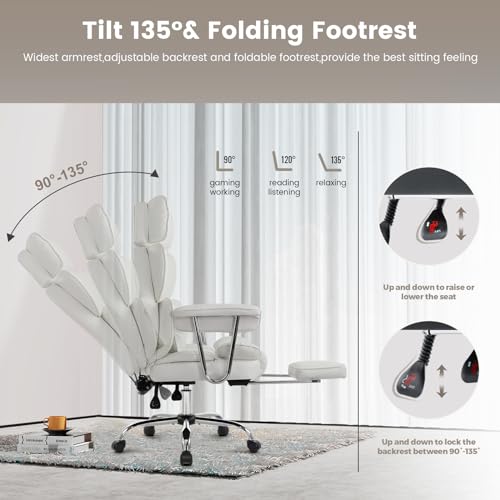 - Multifunctional Office Chair: The adjustable headrest and extendable footrest make our executive office chair even more outstanding. The headrest can be adjusted in height to meet your comfortable posture, and the soft wing supports are added on both sides to prevent your head from tilting or slipping when lying sideways. The retractable padded footrest is located beneath the spacious seat, allowing you to relax your legs and feet and reduce fatigue at the end of the day. Therefore, this high-back desk chair can be used as a computer chair, executive chair, gaming chair and study chair, etc.