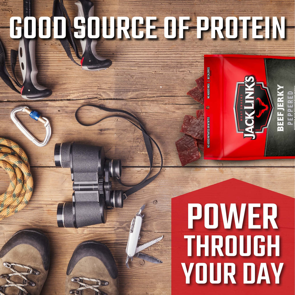 - GOOD SOURCE OF PROTEIN: Protein is an essential part of your diet and Jack Link's Peppered Beef Jerky is a delicious way to get more protein every day. With 9 grams of protein and 80 calories per serving, it's a flavorful, must-have snack.