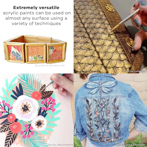 - Smooth Application - The light-bodied consistency of this metallic paint for metal and fabric is completely opaque. Create bold designs on both light or dark backgrounds or mix with other Jacquard products for different levels of transparency