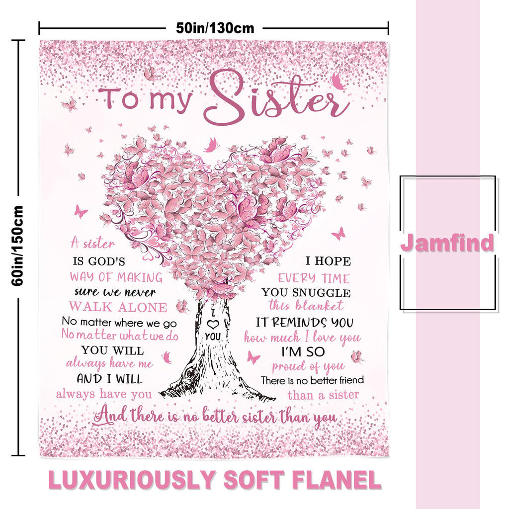 - Elegant Design: This blanket was specially created for your sister. Our blanket has colorful and exquisitely patterned, the love tree surrounded by pink butterflies in the middle is one of the major features of the blanket. Moreover, the blanket has many expressed your love and encouragement utterances for the sister, wrap yourself up in this blanket and consider it a big hug! Having a blanket like this will attract attention no matter where you are and lift your sister's mood.
