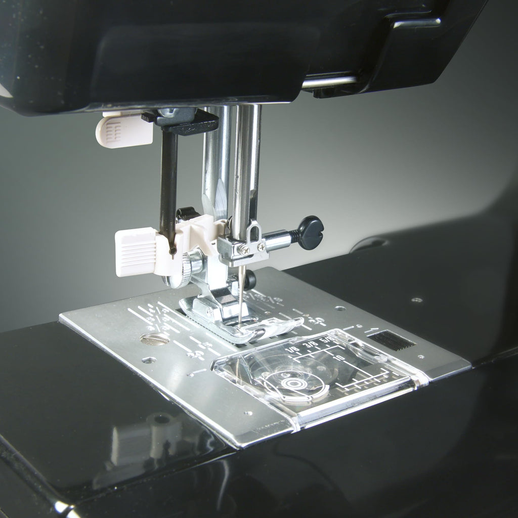 Details: The HD-3000 Black Edition is a heavy duty machine, perfect for a beginner or sewist looking to do a wide range of sewing. A handy instructional guide is located in the top tray door of the machine, which indicates the feet and stitch settings for a variety of sewing tasks. Heavy duty aluminum body and 18 stitches, including a one-step buttonhole give you the tools you need to handle any kind of sewing project. Stitch length and width adjustment are conveniently located on the front of the machine, and a hard cover comes standard for easy storage.