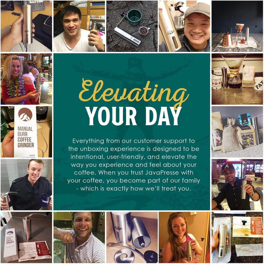 - ENHANCE YOUR MORNING WHILE MAKING AN IMPACT AROUND THE WORLD ― Your deliciously crafted cup of coffee from our manual coffee grinder is helping empower coffee farmers to chase a brighter future. A portion of our profits go towards positively impacting our partner’s coffee supply chain and their local communities. Our mission hinges on one fundamental idea: when we care, happiness flows and everyone wins. Including you with this hand coffee bean grinder by JavaPresse.