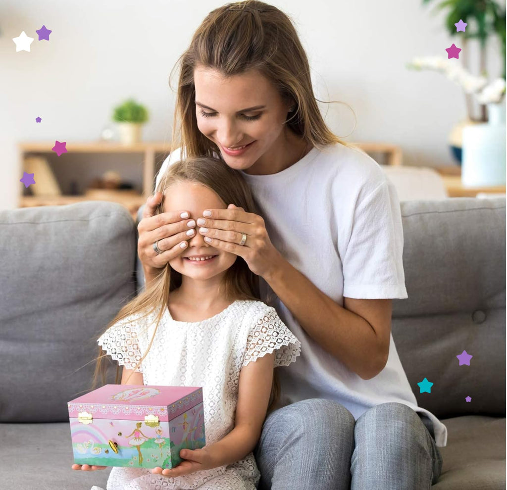 - Fairytale-Inspired Room Decor: This kids jewelry box adds a whimsical touch to any room with its ballerina and rainbow design. Great as a centerpiece for fairytale-themed music box decor