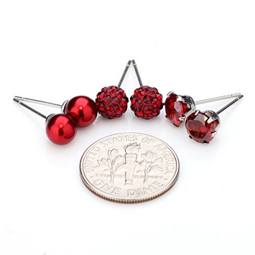 - MIX STUD EARRINGS SET: 3 pairs in different style 6mm stud (10mm pin length; 0.7mm 21G thickness). Gorgeous sparkling shine from cubic zirconia rhinestone stud earrings, luminous faux pearl stud and glittering bling bling birthstone stud earrings. This set of 3 stud earrings with hypoallergenic stainless steel pin is Nickel-free and Lead-free.